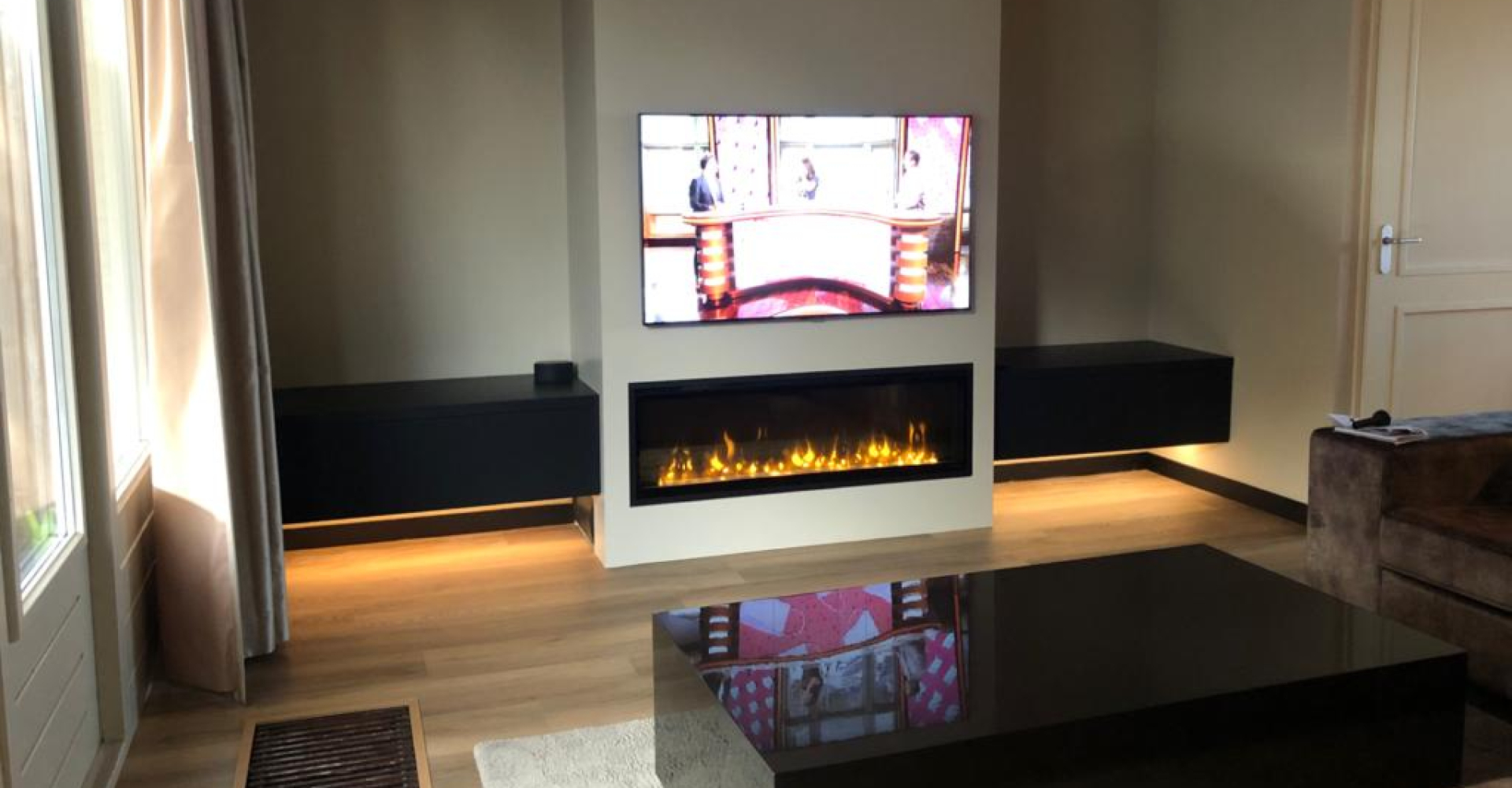Een Cinewall is dé alles-in-één oplossing om op een stijlvolle wijze je televisie en sfeerhaard op te laten gaan in de wand! Een spoor van en wirwar aan kabels is hiermee ook gelijk verleden tijd, want die worden door ons netjes achter de voorzetwand weggewerkt. En omdat maatwerk in onze vingers zit, kun je de Cinewalll geheel naar eigen wens inrichten. Precies zoals jij het voor ogen hebt.