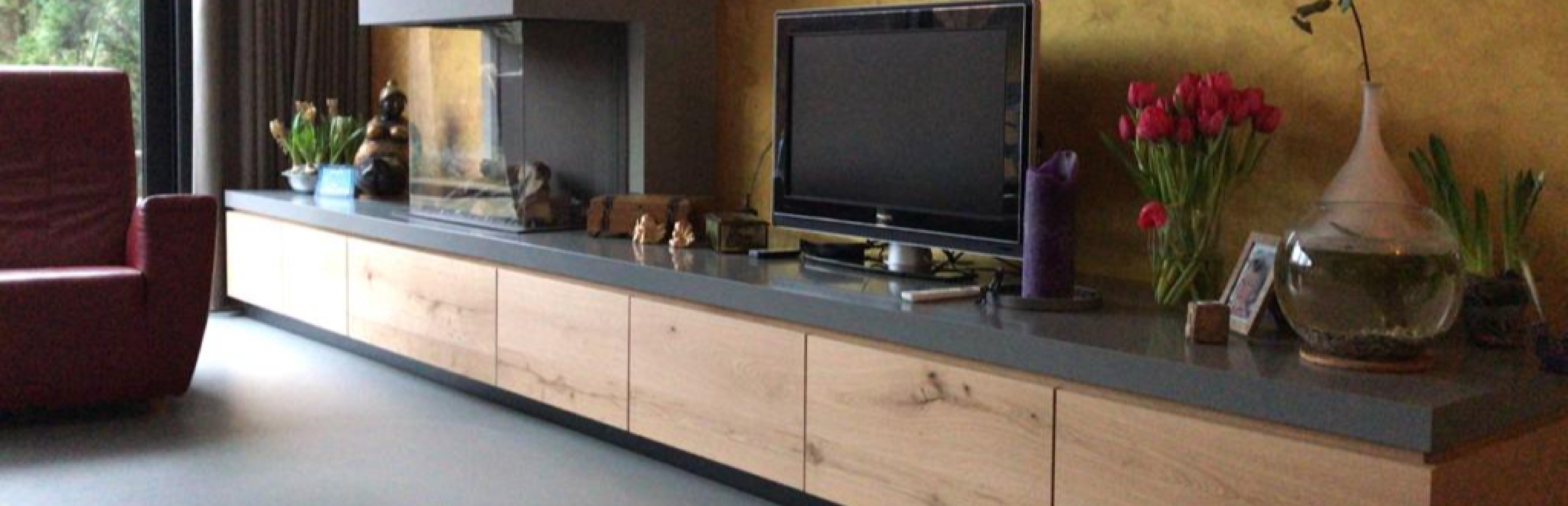 Aan ruimte heeft deze klant zeker geen gebrek in dit wandvullende en greeploze TV meubel!
