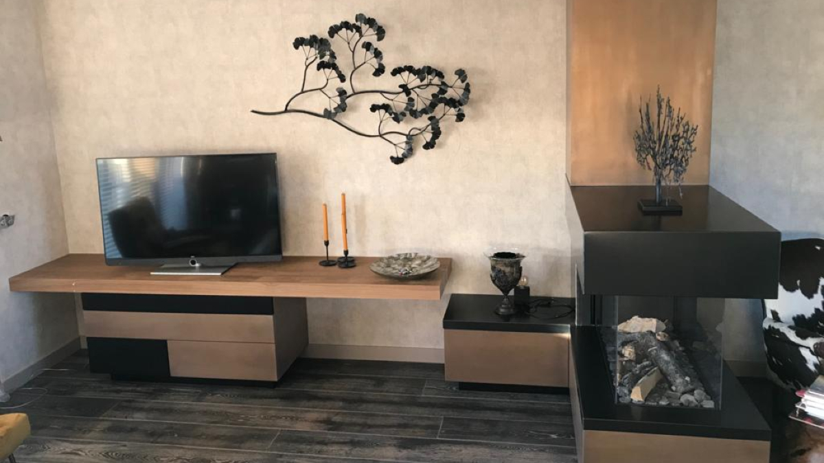 Als je niet kunt vinden wat je zoekt, dan is maatwerk van Kreling de oplossing! Kijk toch eens hoe goed het ontwerp van dit televisie- en haardmeubel voor deze klant uitpakt. Wij worden er keer op keer blij van als we een interieurwens tot leven laten komen.